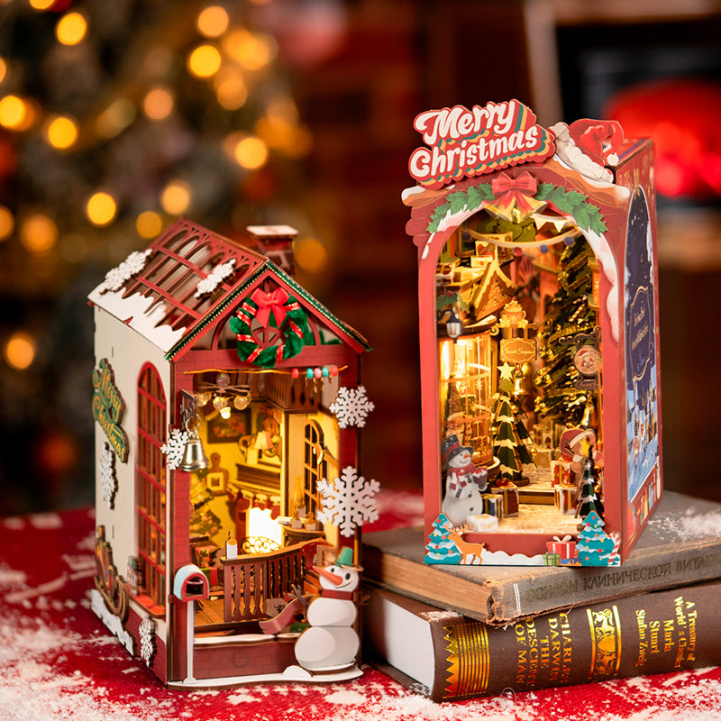 Take a look at a variety of themed book nook kits—fun to assemble and perfect for decorating your bookshelf.